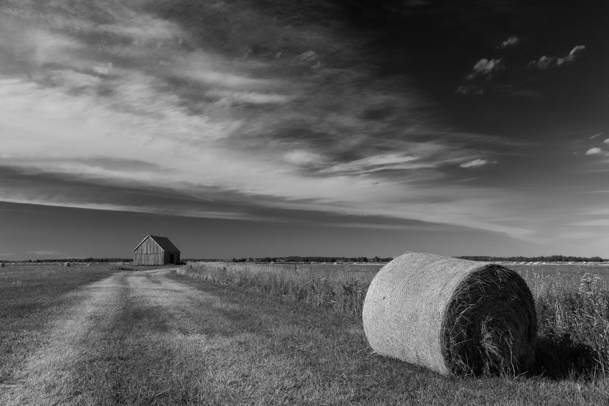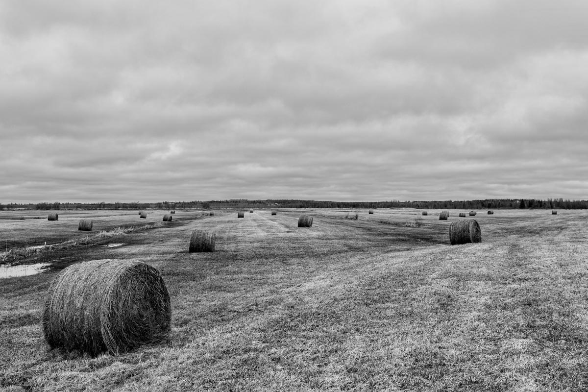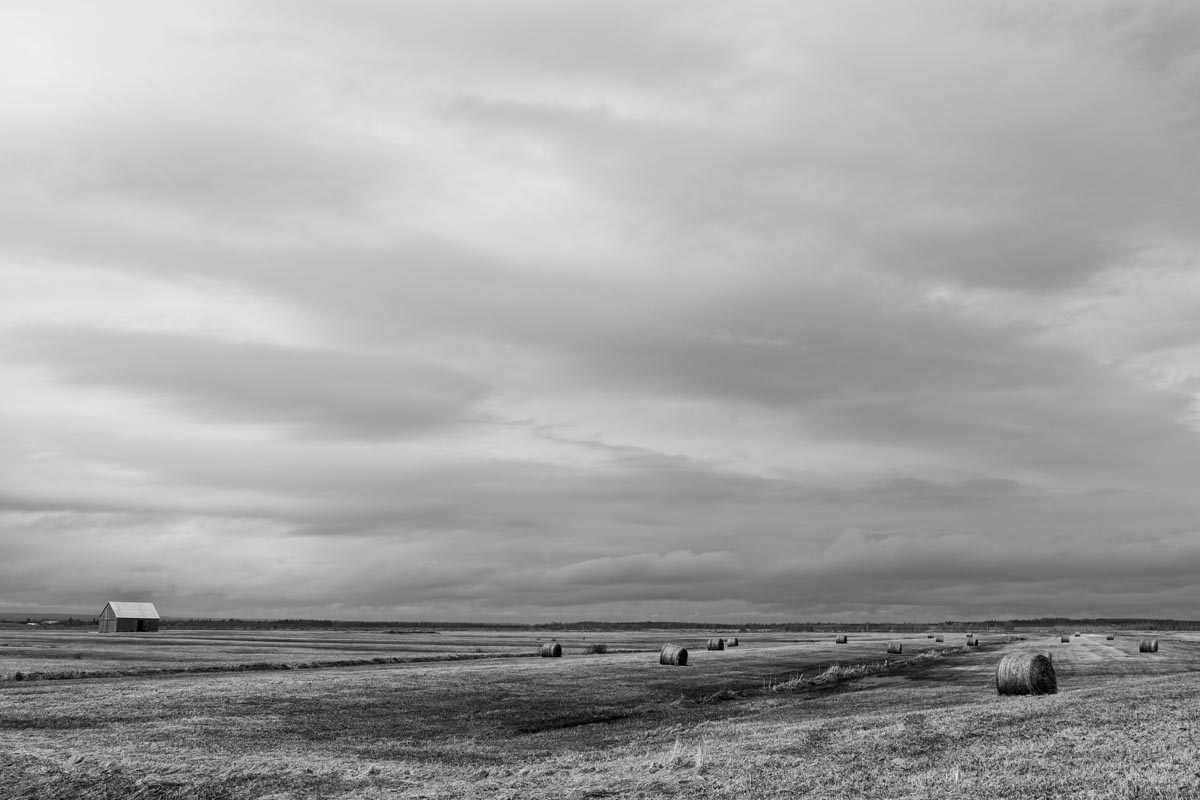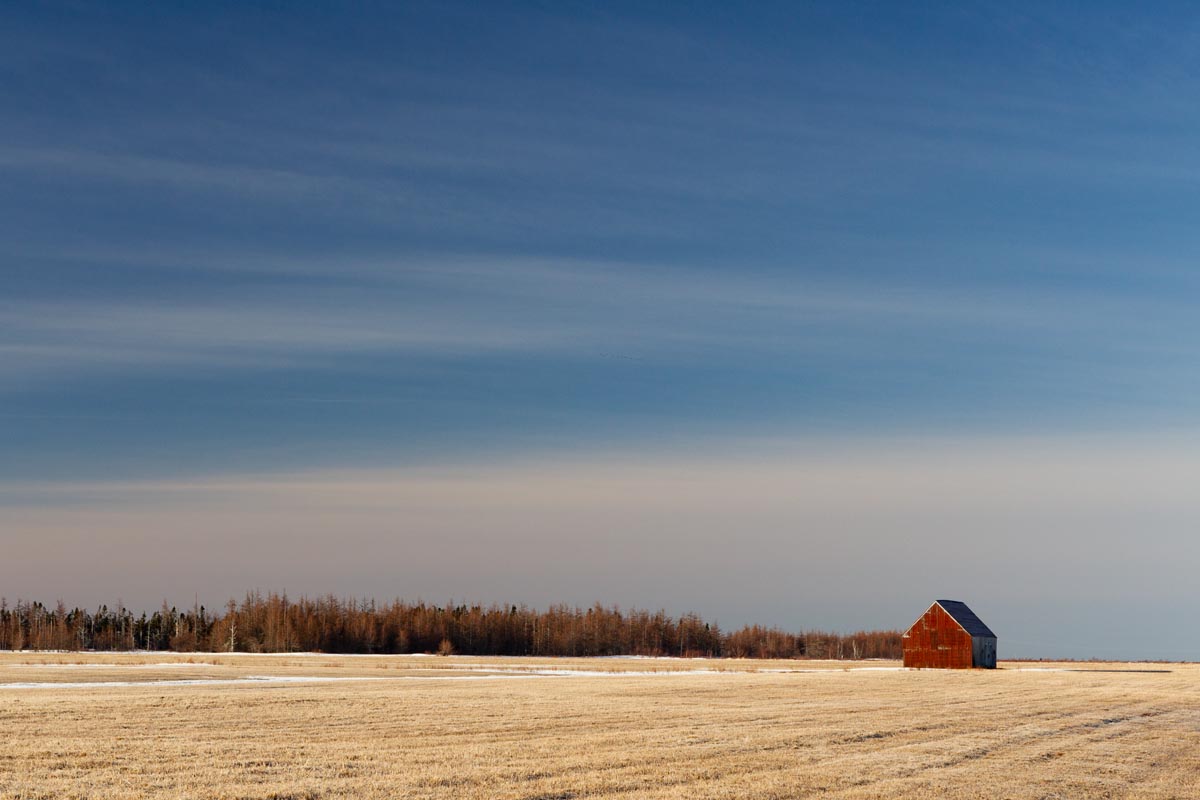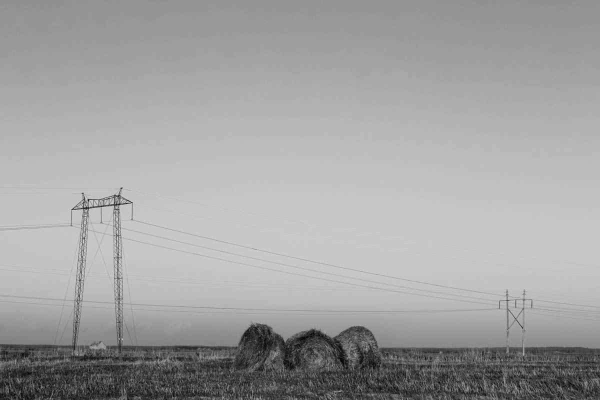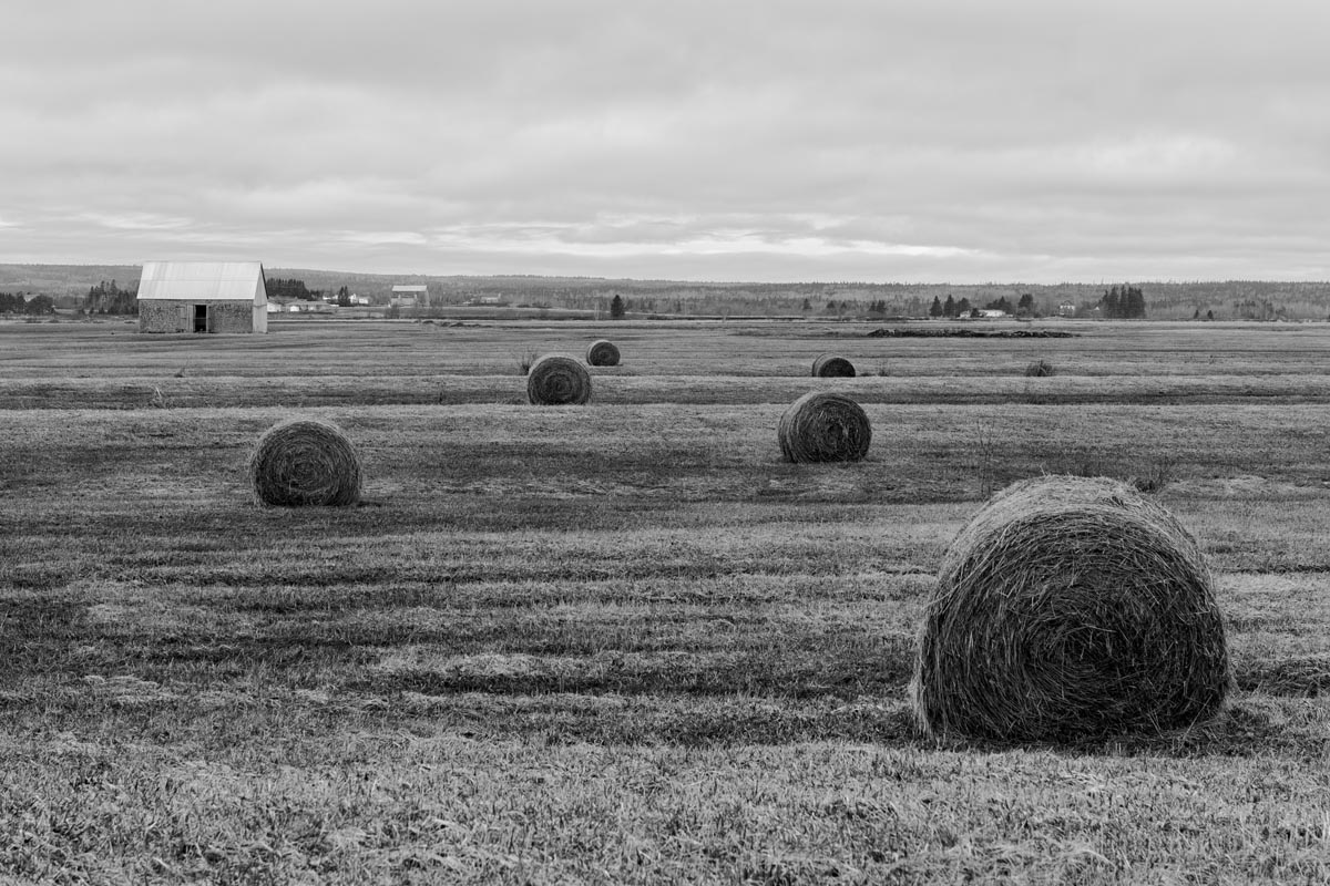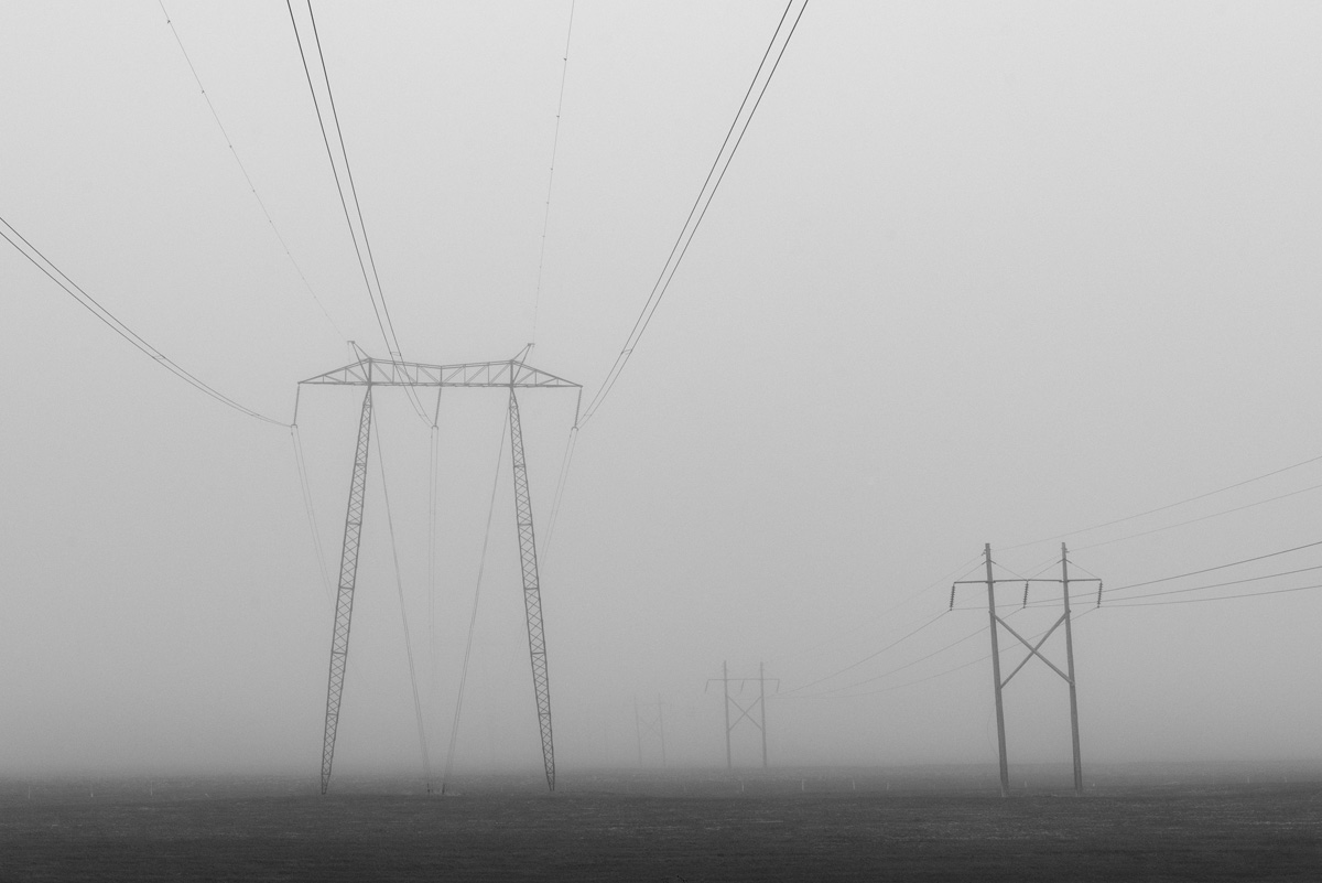 Major electrical transmission lines also cut through the Tantramar Marsh, and the large steel towers and high-voltage lines loom over the fields. At first I was annoyed by their presence, and would often try to frame images to exclude the towers and make it as easy as possible to remove the transmission lines in Photoshop. Over the years, though, I came to recognize them as an integral part of the landscape and now willingly incorporate them into the images, either as a compositional element or as the main subject. If they are ever-present to the eye, they can be ever-present in the photograph.