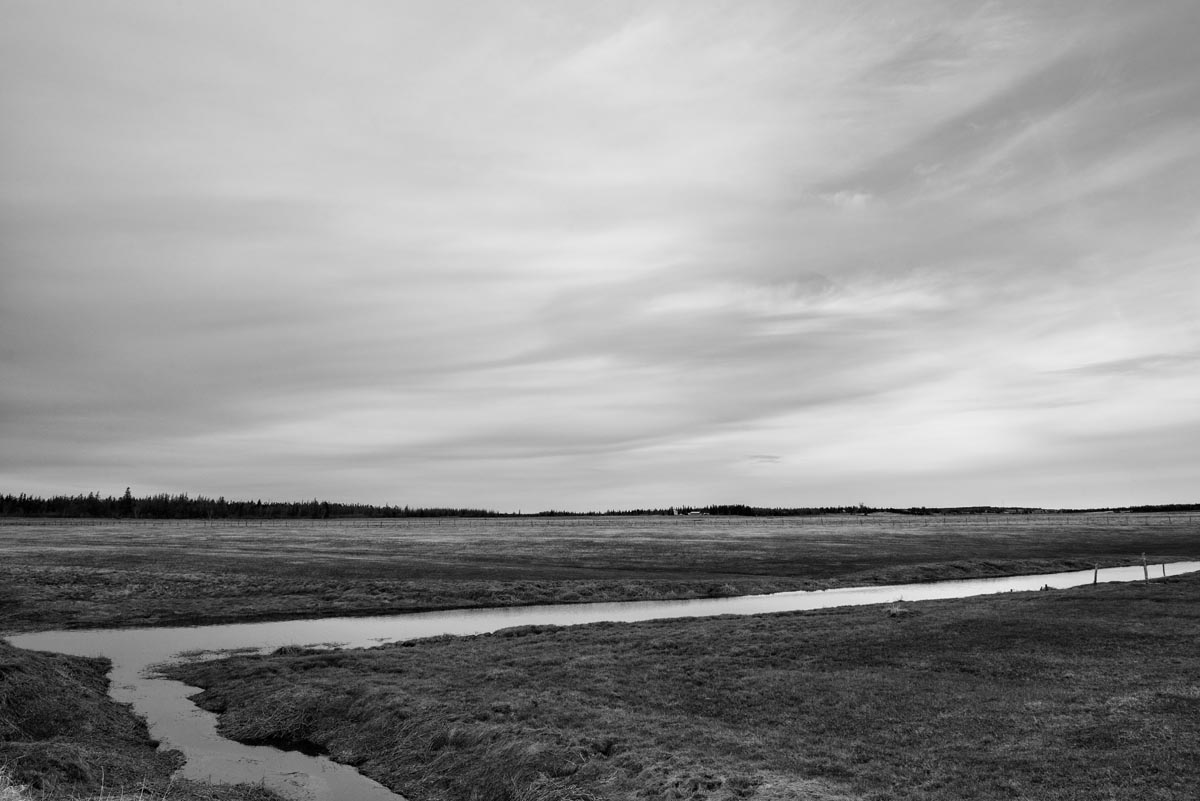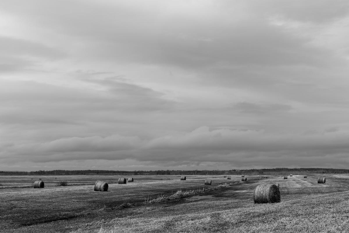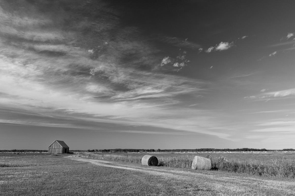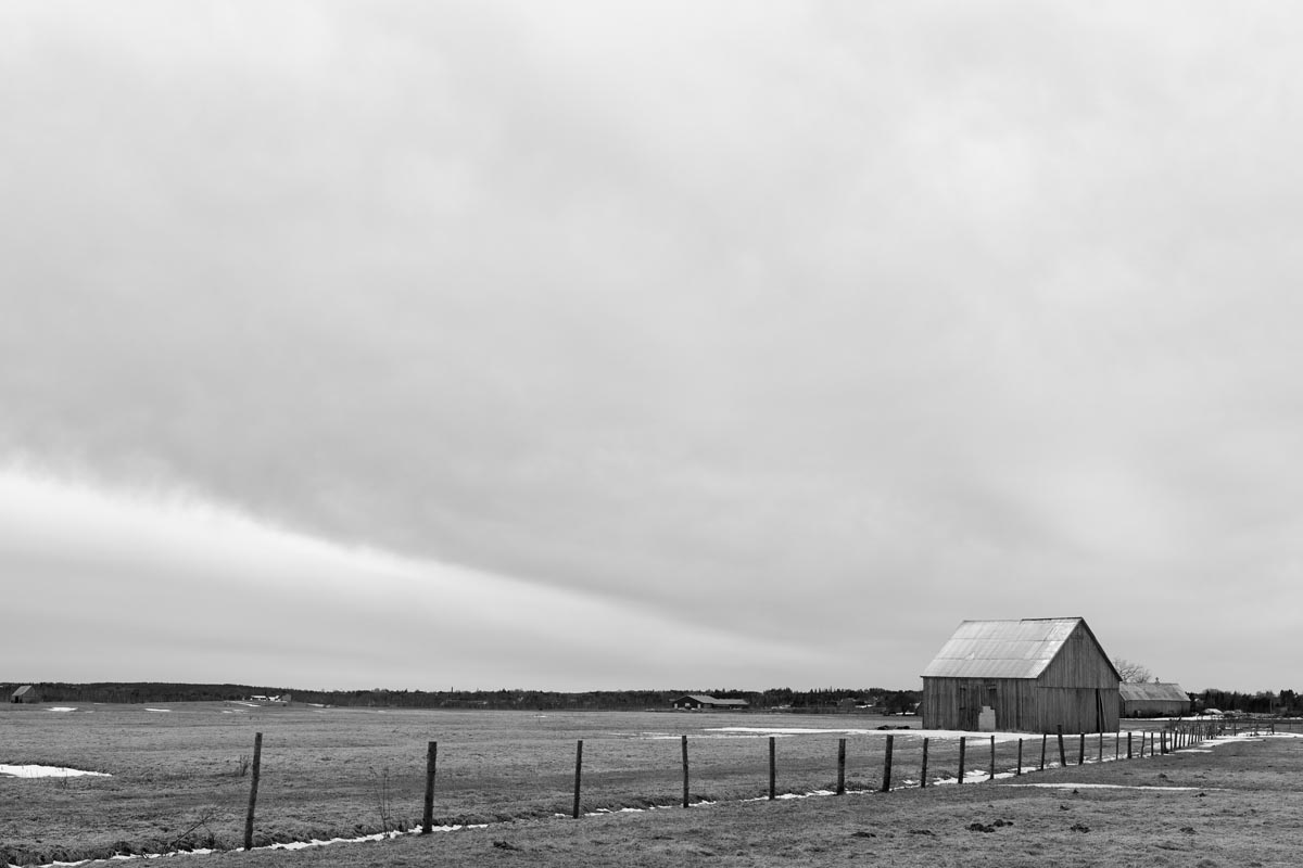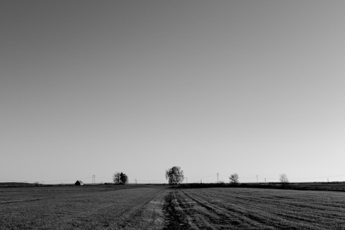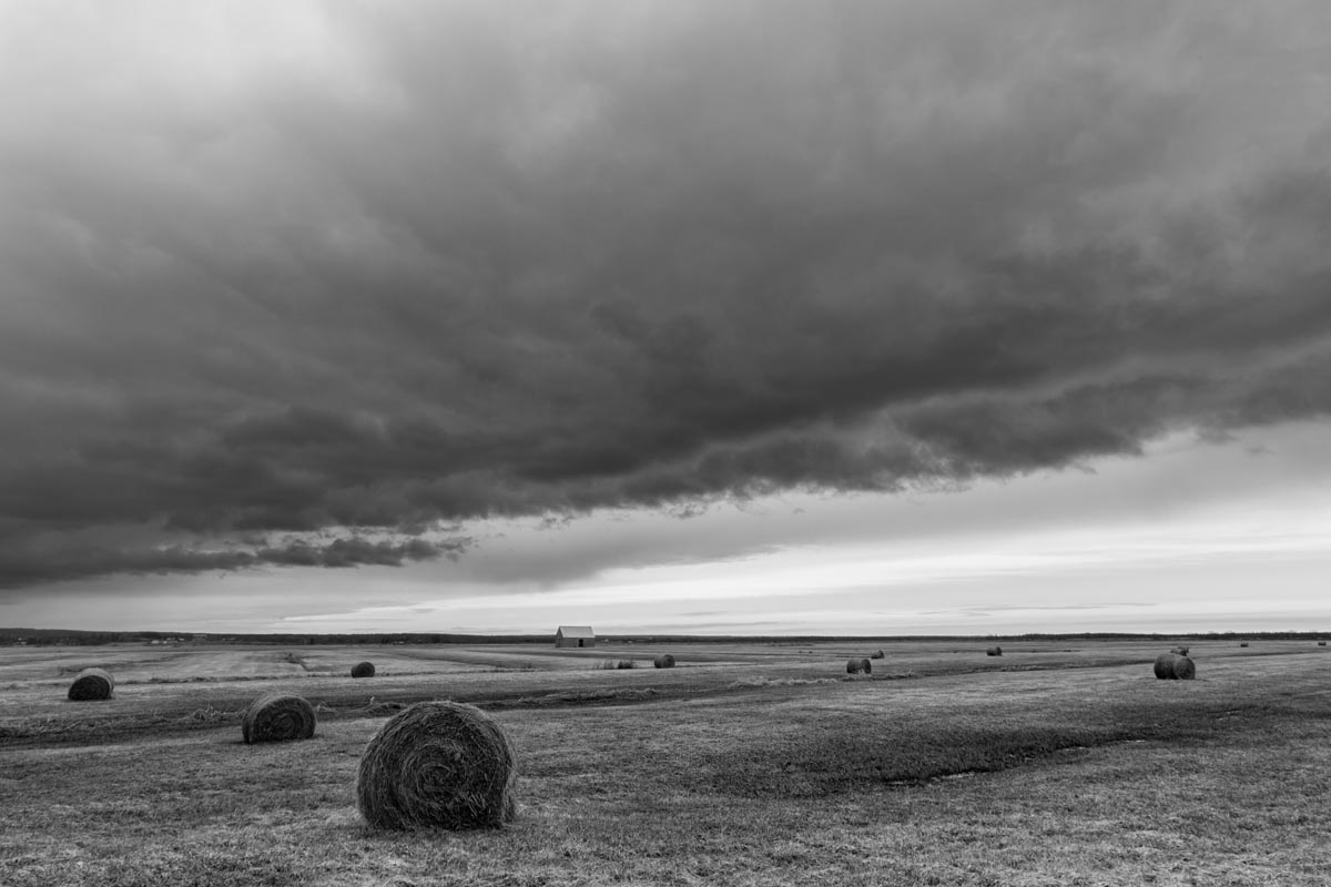 Major electrical transmission lines also cut through the Tantramar Marsh, and the large steel towers and high-voltage lines loom over the fields. At first I was annoyed by their presence, and would often try to frame images to exclude the towers and make it as easy as possible to remove the transmission lines in Photoshop. Over the years, though, I came to recognize them as an integral part of the landscape and now willingly incorporate them into the images, either as a compositional element or as the main subject. If they are ever-present to the eye, they can be ever-present in the photograph.