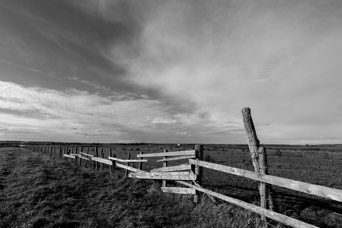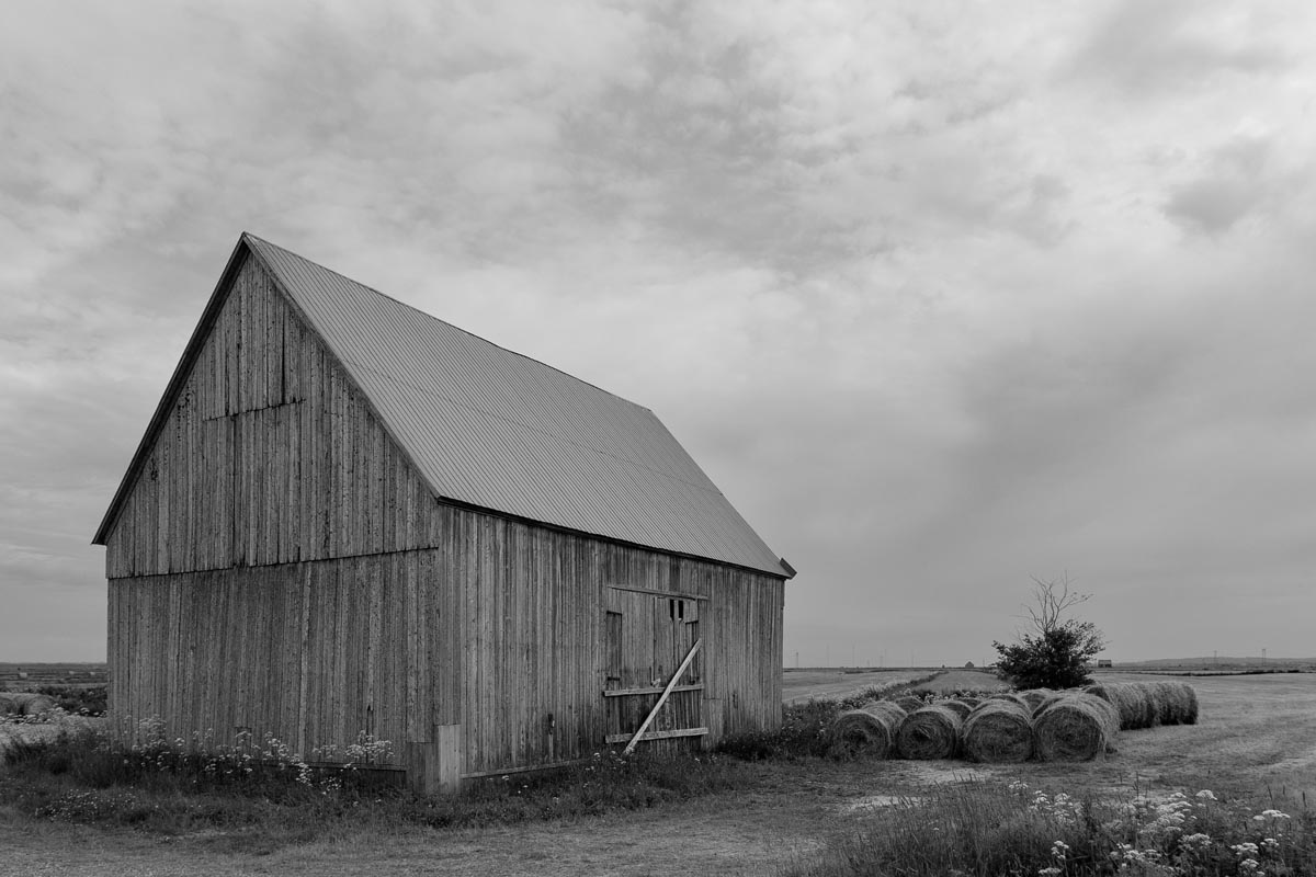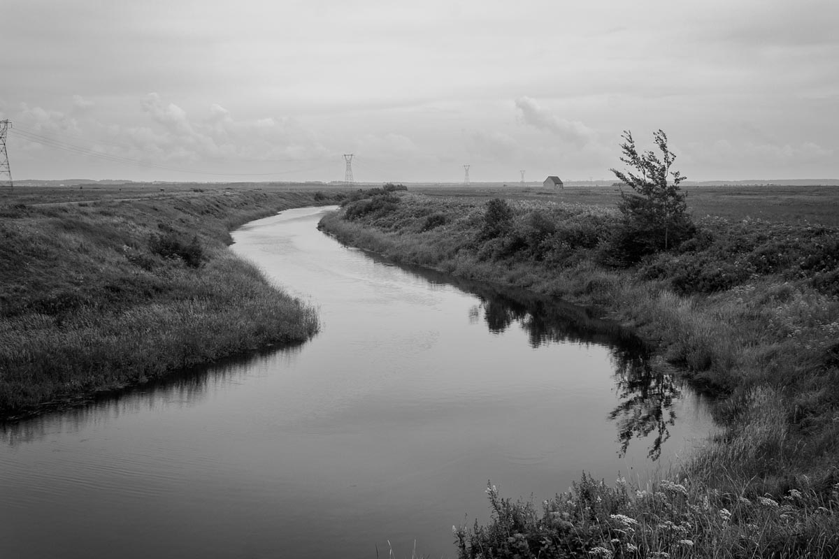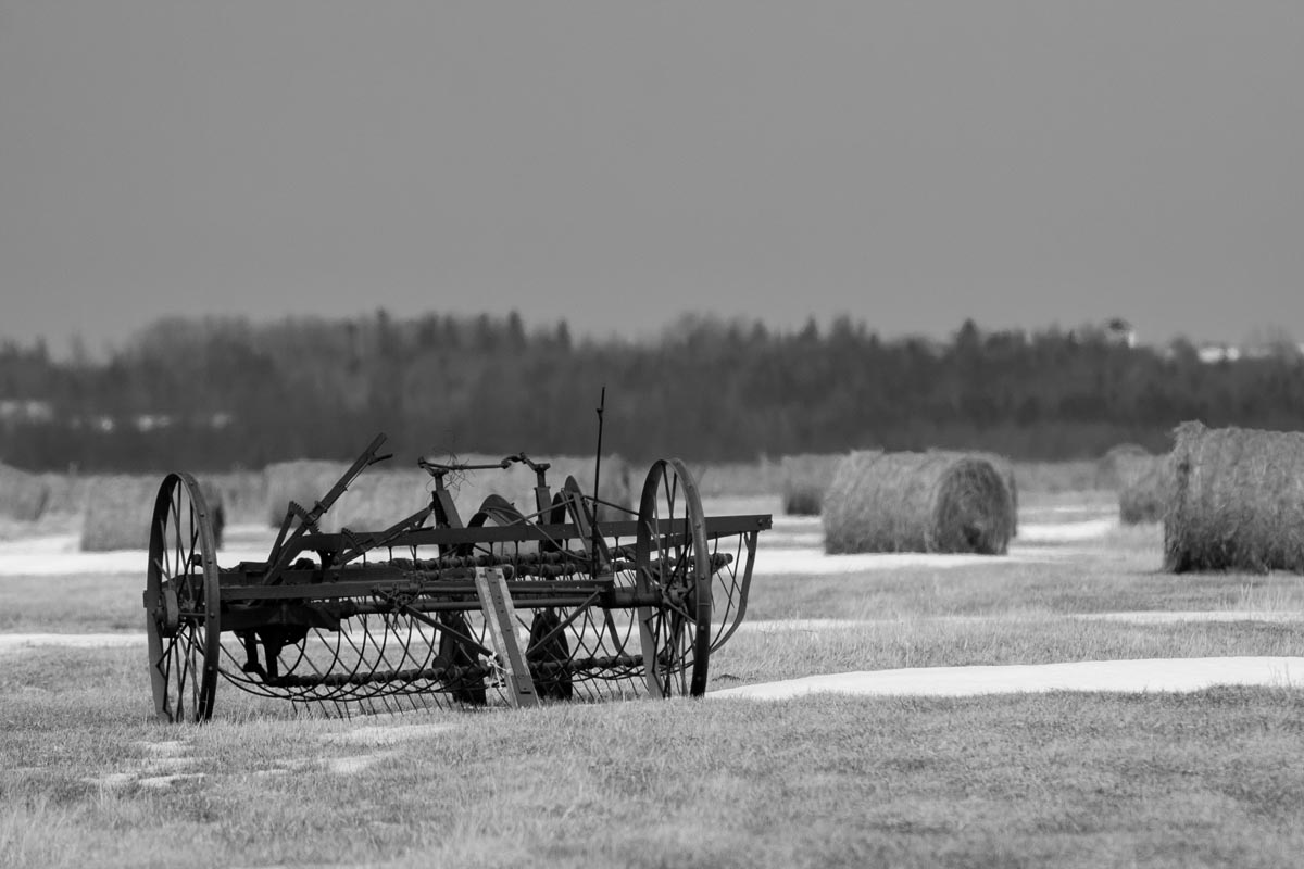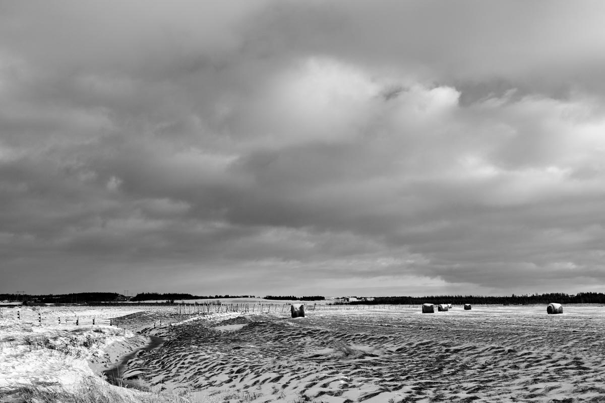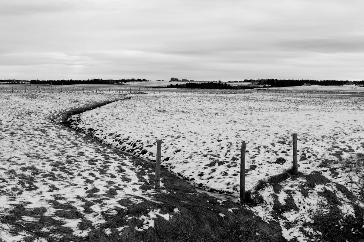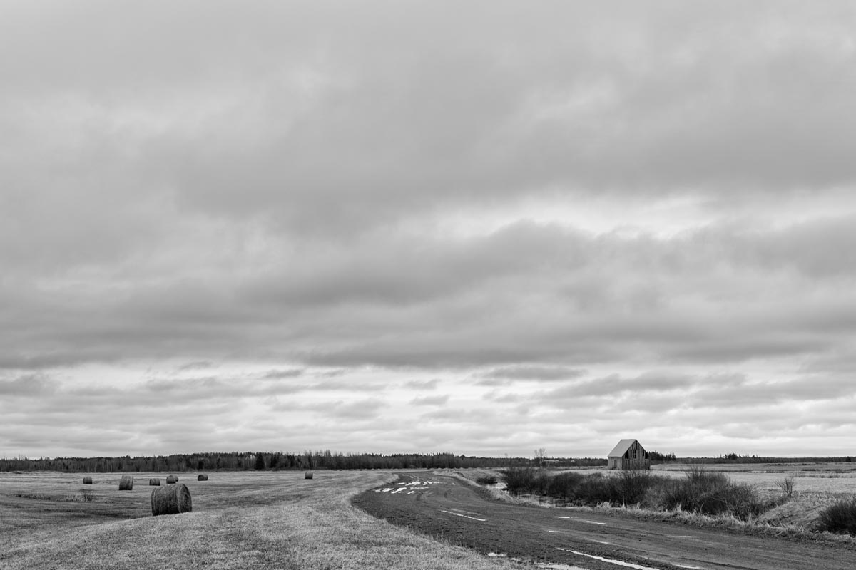 Major electrical transmission lines also cut through the Tantramar Marsh, and the large steel towers and high-voltage lines loom over the fields. At first I was annoyed by their presence, and would often try to frame images to exclude the towers and make it as easy as possible to remove the transmission lines in Photoshop. Over the years, though, I came to recognize them as an integral part of the landscape and now willingly incorporate them into the images, either as a compositional element or as the main subject. If they are ever-present to the eye, they can be ever-present in the photograph.