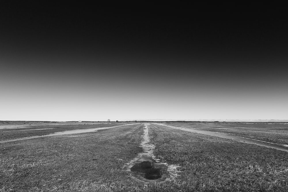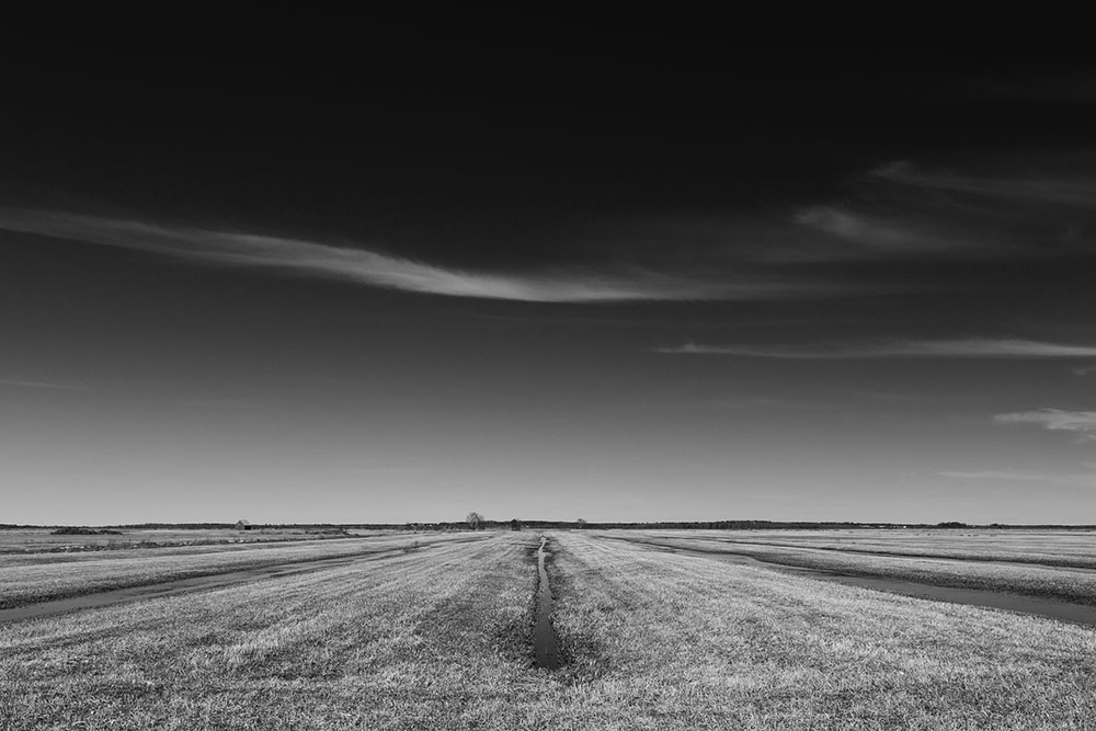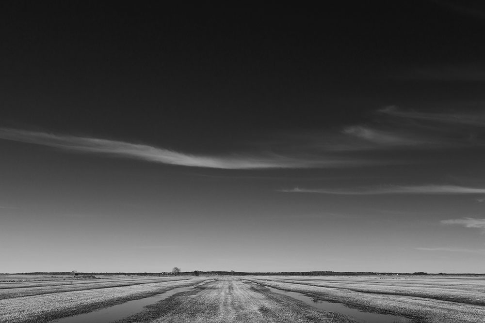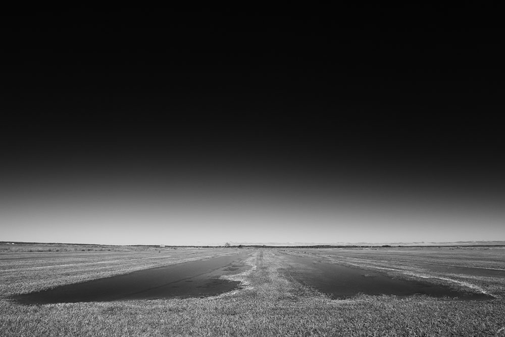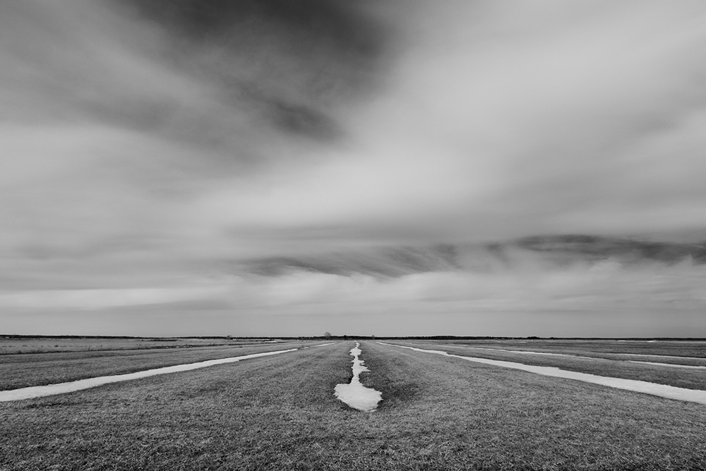 For me, the swales, whether filled with water, snow, or ice, create leading lines to both divide the landscape and draw us into it.